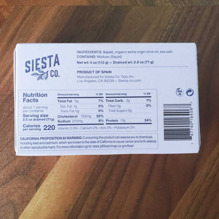The small squids in this tin are nicely packed and fair textured with a slight chew and not too mushy. Since the squids are whole, do be wary that you may bite into the hard bits that is the beaks, which are noticeable but not problematic to pick out as you’re eating. I plan to make this often using whatever tins I have on hand so I can have it at the ready for those days where time is tight to make dinner!