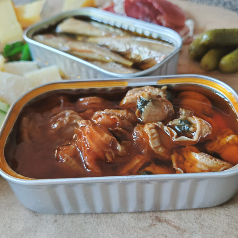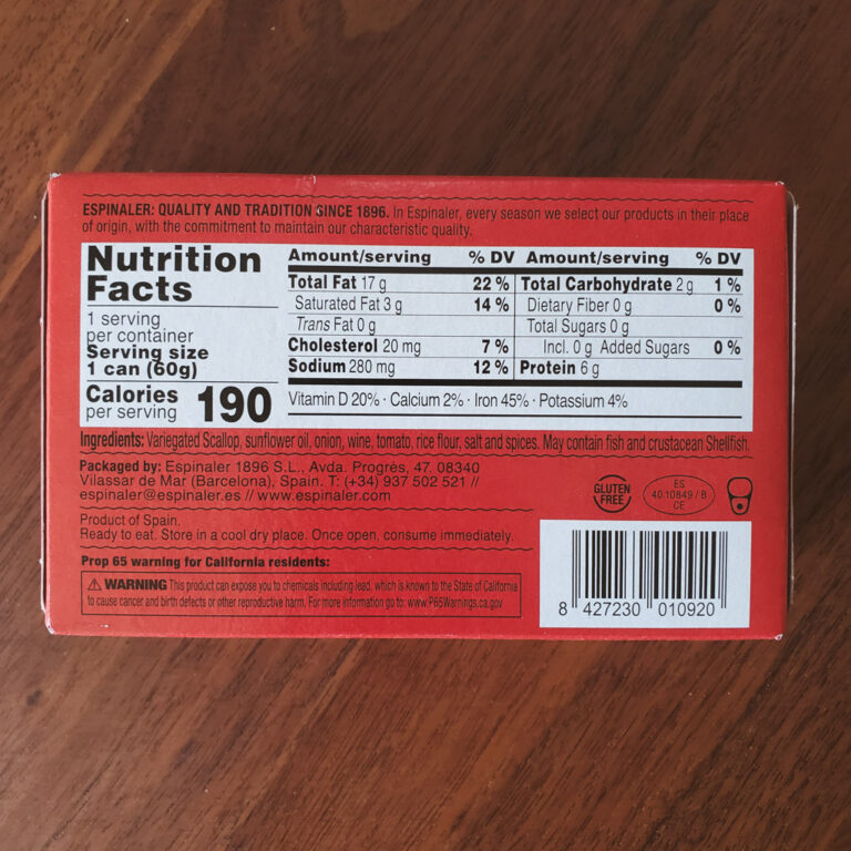 Pepus Variegated Scallop in Galician Sauce is one of my favorite tinned seafoods. First of all, variegated scallops are just delicious in every way, fresh or preserved! The texture of the meat from these cans is supple and still has a moderate chew, making it a suitable protein to cook in a dish or to just eat by itself. The Galician sauce especially has a nice umami flavor that’s perfect for bread or other starches to soak up. I particularly like this dish paired with another “chewy” element that is gnocchi. Don’t even need pasta sauce with this! The oil and sauce from the can provide more than enough flavor. Just add some greens and another protein such as shrimp, and you’ve got a nice hearty meal.